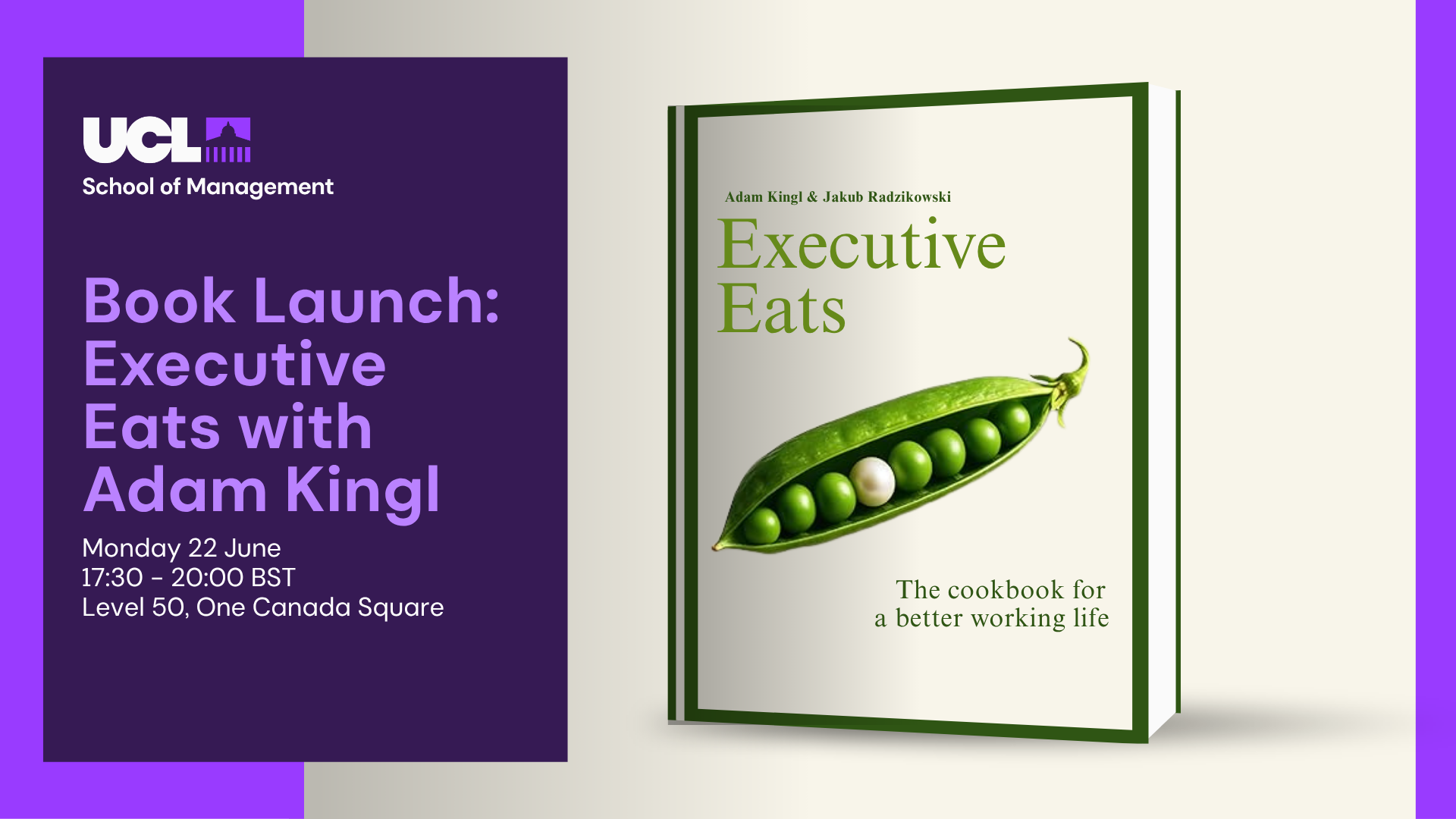 On Monday 22 June, the UCL School of Management will host the launch of Executive Eats, a cookbook authored by Adam Kingl, Adjunct Lecturer in the School of Management’s Strategy & Entrepreneurship group and ‘The Future of Work: Leading with Inspiration and Purpose’ Executive Education Programme Director.