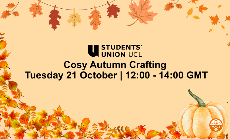 Open to all students, we invite you to join the UCL Students’ Union for a creative session where you can paint pumpkins, craft your own Halloween-themed jewellery, make an adorable phone charm, or decorate a tote bag. No experience needed, just come along, unwind, and have some fun!